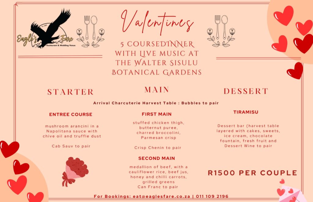 Eagle’s Fare Restaurant is nestled in the beautiful Walter Sisulu National Botanical Garden. Botanical gardens are living museums and the Walter Sisulu National Botanical Garden is no exception – the Witpoortjie Waterfall is a magnificent backdrop to the splendid gardens filled with indigenous plants and the residence of the only Black (Verreaux) Eagle breeding pair in an urban area in the world.
